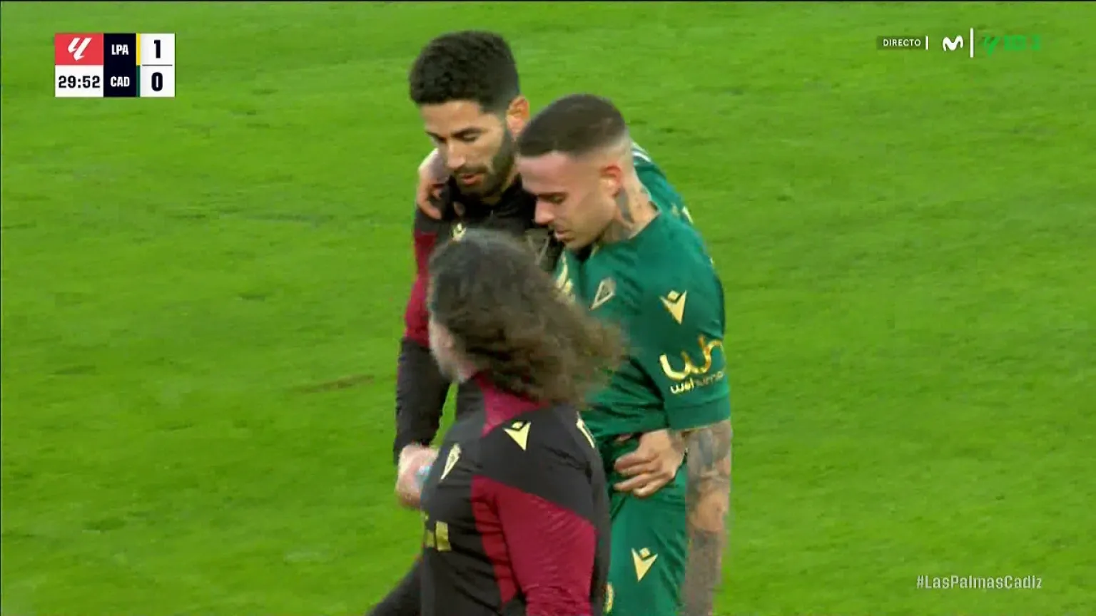 Malas, muy malas noticias sobre el estado físico del delantero del Cádiz CF Roger Martí. El ariete tuvo que abandonar antes del descanso el encuentro de los gaditanos en Las Palmas. Una acción fortuita en la primera parte hizo que el jugador pidiera las asistencias y tras varios intentos tuvo que abandonar el choque con una cara de extrema preocupación y llevándose las manos al rostro.