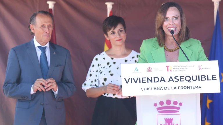 Al acto, que ha estado presidido por la ministra de Vivienda y Agenda Urbana, Isabel Rodríguez, han acudido también, el alcalde de Chiclana, José María Román, la consejera de Fomento, Articulación del Territorio y Vivienda de la Junta de Andalucía, Rocío Díaz, y la subdelegada del Gobierno en Cádiz, Blanca Flores.