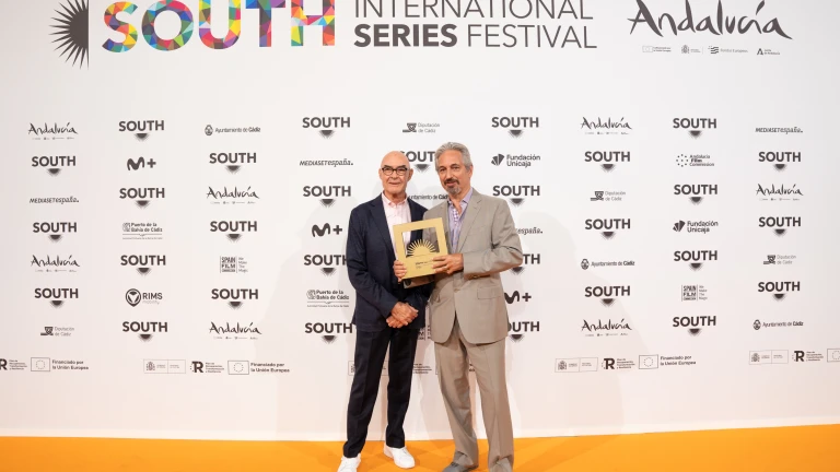 El ecuador de South International Series Festival pasaba ayer como una de las jornadas más internacionales y con el reconocimiento de David Shore. Así, la noche de ayer lunes tenía como epicentro el reconocimiento al director de series tan míticas y conocidas como The Good Doctor o House, que recogía el primer “International SISF Member Award” que entrega el Festival en su aún corta historia, ante un abarrotado Auditorio del Palacio de Congresos de Cádiz, un premio que era entregado el director de South, Joan Álvarez, tras escuchar las palabras de elogio de David Shore para el festival y la propia ciudad de Cádiz. Shore reconocía que solamente “venir y visitar España” ya era una auténtica alegría.