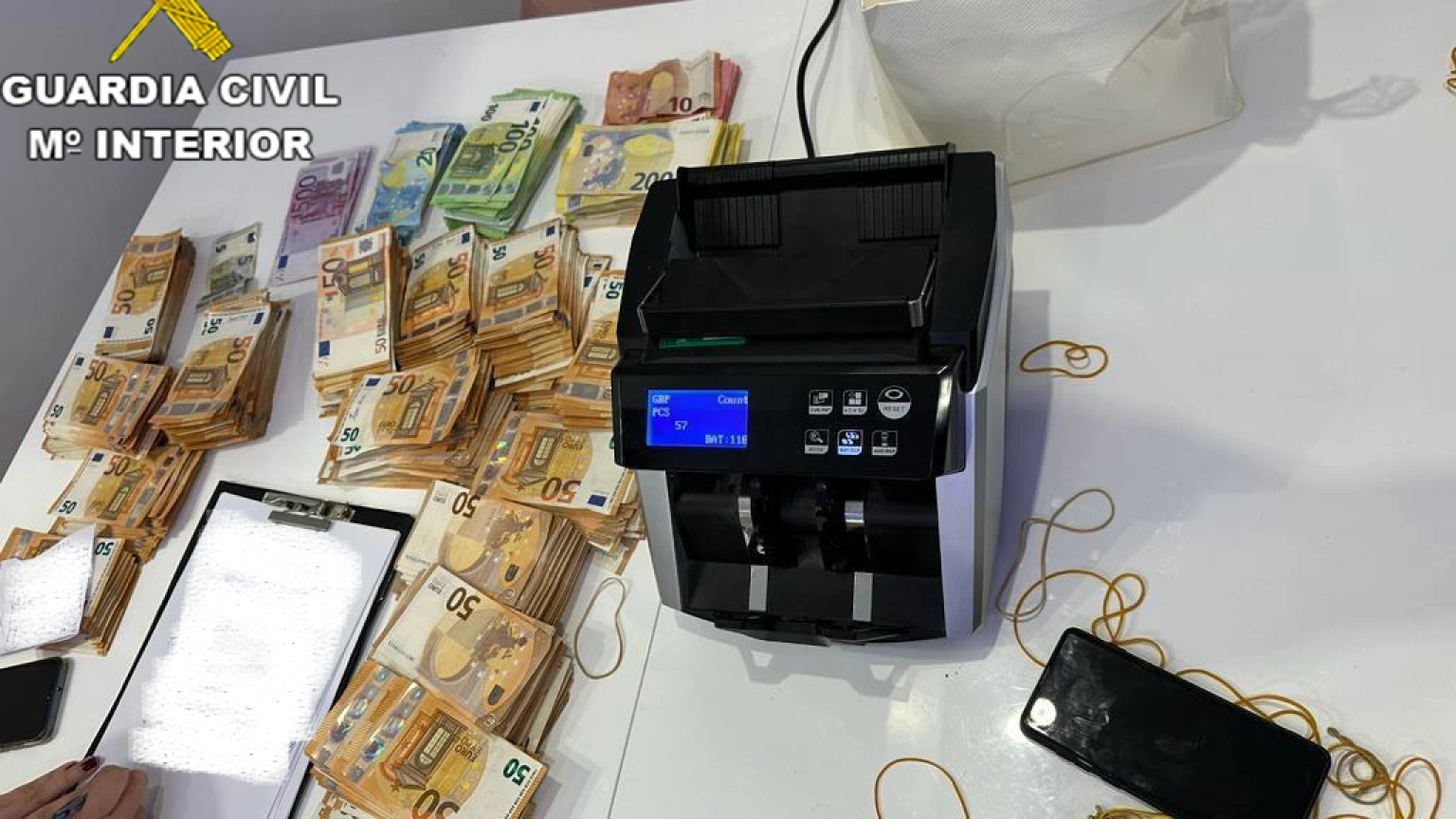 La Guardia Civil ha procedido a la detención de 4 personas pertenecientes a una organización criminal dedicada a realizar vuelcos a otros narcotraficantes. En el operativo se han realizado 7 registros domiciliarios donde se han intervenido 300.000 euros en metálico, armas blancas, dos escopetas, gran cantidad de dispositivos electrónicos y 7 vehículos. A los detenidos se les imputan los supuestos delitos contra la salud pública, robo con violencia, amenazas con armas de fuego y tenencia ilícita de armas.