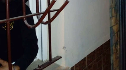 Ir en pijama, no fue impedimento para el agente de la Benemérita que procedió a la detención, esposan a los presuntos delincuentes a una reja.