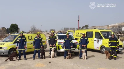 Según informa el Consorcio, contingente del Consorcio está formado por seis bomberos y cinco perros adiestrados para la búsqueda de personas entre los escombros.