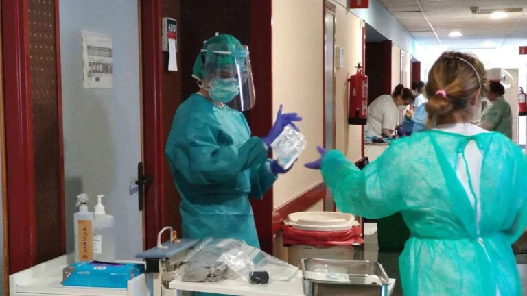Atención en una planta Covid en el Hospital Universitario Juan Ramón Jiménez de Huelva