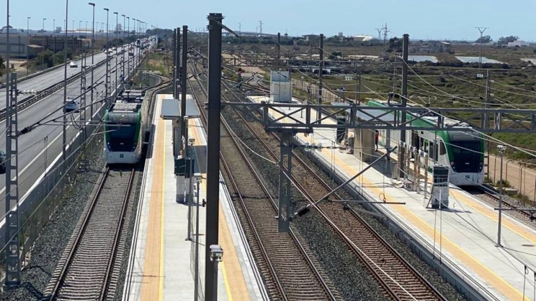 Trambahía en la parada del Rio Arillo entre San Fernando y Cádiz