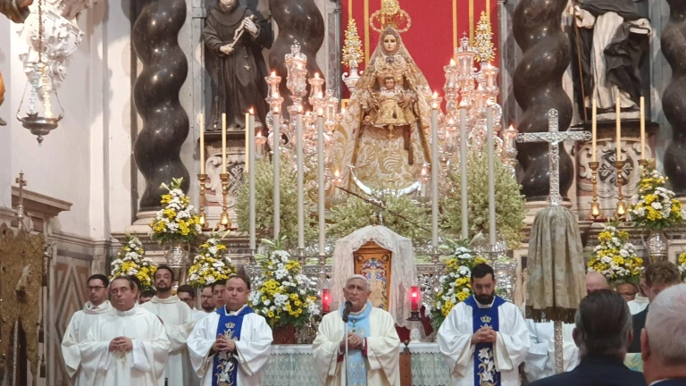 El obispo de la Diócesis de Cádiz y Ceuta, preside la función votiva en la que el alcalde, Bruno García, rinde honores a la regidora perpetua en representación de toda la ciudad