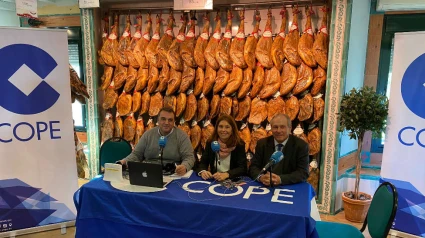 Los micrófonos de COPE Provincia de Cádiz desde Montesierra. Venta de jamones ibéricos y paletas, embutidos, loncheados, precocinados y mantecas.