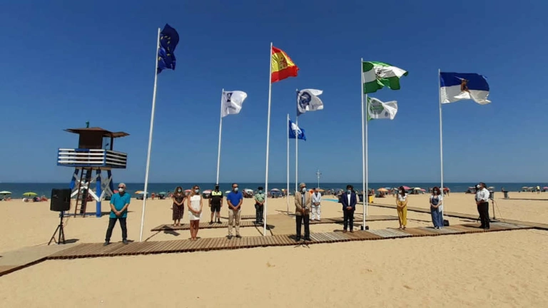 El Alcalde Luis Mario Aparcero reconoce el esfuerzo de los servicios de playa para conseguir banderas azules para 13 de los 14 km que tiene Chipiona, este año se incorpora a este reconocimiento la playa de Tres Piedras - Costa Ballena.