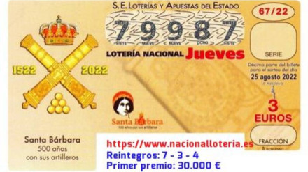 Ha resultado agraciado el número 79.987 con el primer premio del sorteo de este jueves, habiendo sido vendido en la barriada de Los Naranjos