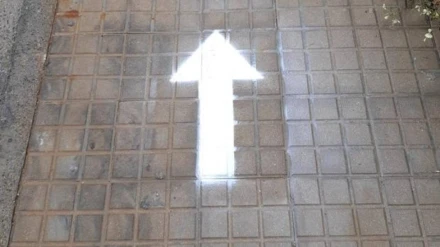 El munipio pinta flechas en el suelo para que los vecinos paseen en la misma dirección y evitar así afluencias de personas en el mismo lugar