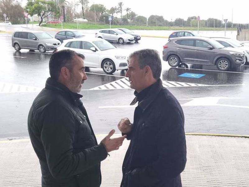 15/12/2022 El diputado provincial, Javier Pizarro, y el alcalde de Arcos, Isidoro Gambin, ante la explanada junto al estadio de Arcos (Cádiz)