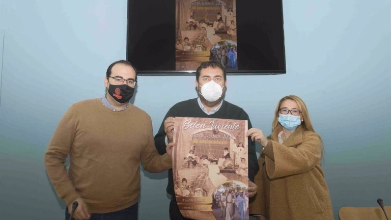 El diputado provincial de Desarrollo de la Ciudadanía de la Diputación de Cádiz, Jaime Armario, el alcalde de Bornos, Hugo Palomares, y la concejala de Fiestas y delegada de Coto de Bornos, Isabel Sánchez, han presentado este miércoles, en rueda de prensa, los detalles de una de las primeras citas marcadas en la programación navideña de la provincia: el Belén Viviente de Coto de Bornos, en cuya difusión colabora la institución provincial. El evento regresará a las calles de la localidad el próximo 11 de diciembre, tras el parón motivado por la crisis sanitaria el año pasado.