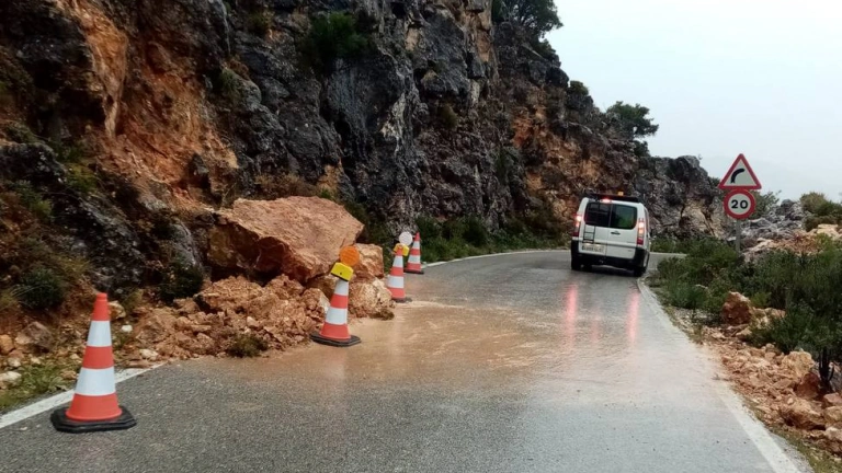 El incidente más llamativo se ha producido en la CA-9104 que comunica Grazalema y Zahara de la Sierra a través del puerto de Las Palomas. En el kilómetro 4 de esta vía se produjo la precipitación de varias piedras sobre la plataforma más una roca de gran porte que quedó en un margen de la vía. Tras señalizar y delimitar el punto afectado, los materiales de menor dimensión fueron retirados manualmente mientras que la peña fue extraída mediante una retroexcavadora.