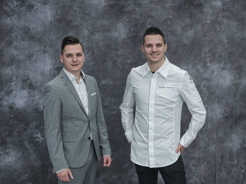 El menú ganador, basado en la versatilidad gastronómica de la uva, defendido por el chef Daniele Tortomsi y el sumiller, Gabrielle Tortomasi, ha consistido en: