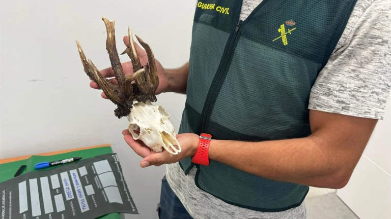 Un agente muestra el trofeo de un cazador investigado por matar a un corzo de manera ilegal en Jerez
