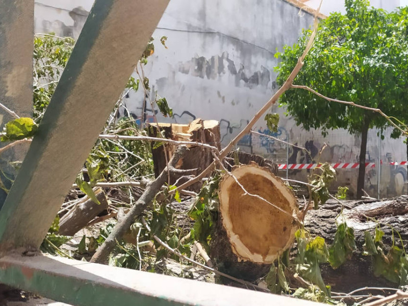 "Lamentablemente, son muchas las muestras de este tipo de acciones durante su etapa al frente de una delegación que teóricamente debe encargarse de velar por la calidad ambiental de la ciudad", explican en la nota distribuida entre los medios de comunicación. Ellos se ocupan de faciltar estas fotos de un lugar que equiparan a otros: "Talas de numerosos árboles como las que se llevaron a cabo en las avenidas República Saharaui y Álvarez Beigbeder, se repiten sin ningún pudor de forma injustificada, siempre con la excusa del supuesto mal estado de todos los árboles y con la promesa de su reposición, algo que en los dos casos citados es fácilmente constatable que se ha incumplido".