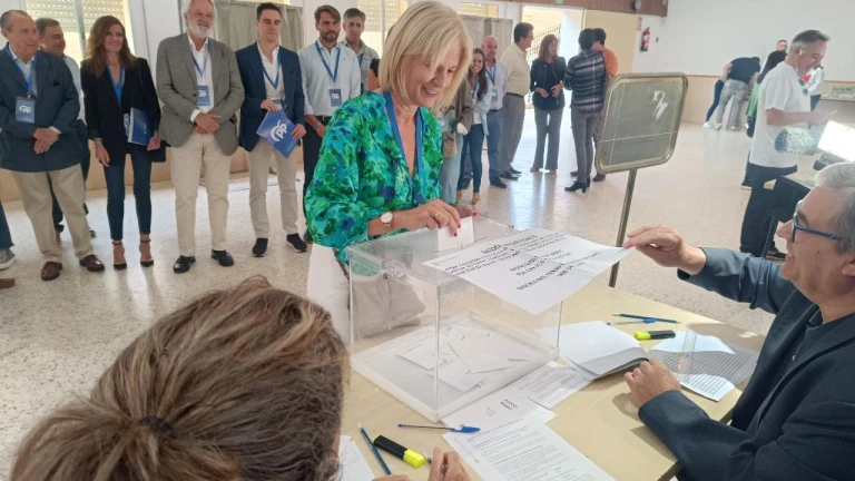 "Que la jornada sea también una buena jornada en vuestro trabajo y que podáis trabajar con absoluta libertad y comodidad" expresó la candidata del PP a la alcaldía de Jerez de la Frontera, María José García-Pelayo, nada más retirarse de la urna en la que acababa de depositar su voto en este 28M. Su cita como votante era en el colegio María Auxiliadora, en la zona de Montealto.