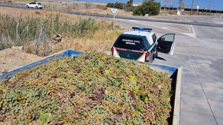 La Guardia Civil ha intervenido este jueves, 17 de agosto, casi 4.000 litros de vino de 14 grados baumé (o alcohol potencial) y 3.000 kilos de uva que no proceden del Marco de Jerez, que a primeros de agosto inició su vendimia en algunos pagos de la comarca y que ya se ha generalizado con la puesta en funcionamiento de 15 de los 32 lagares inscritos.
