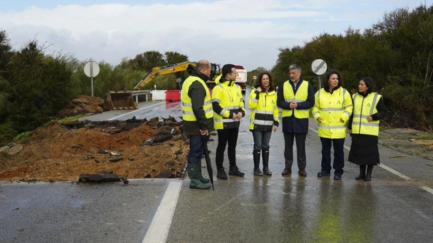 La consejera Rocío Díaz anuncia una actuación de emergencia en la A-2075 de acceso a Rota, dañada por las lluvias