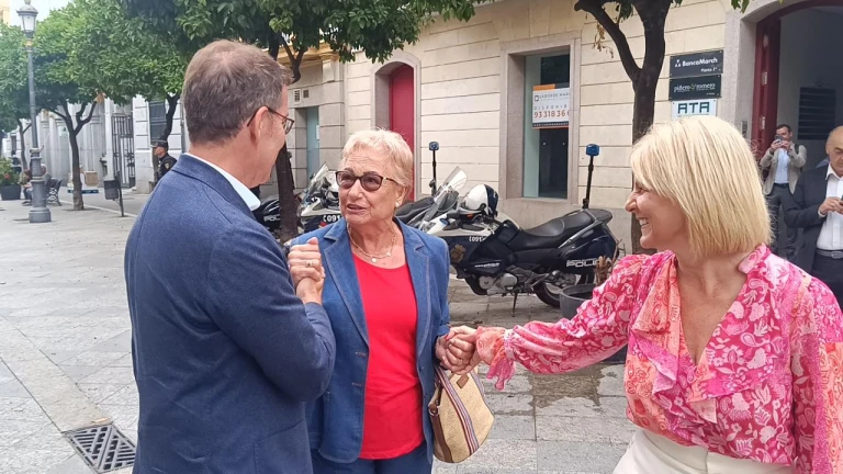 Efusivo paseo de Feijóo junto a la candidata Pelayo en Jerez: "¡Presidente, presidente, presidente!"