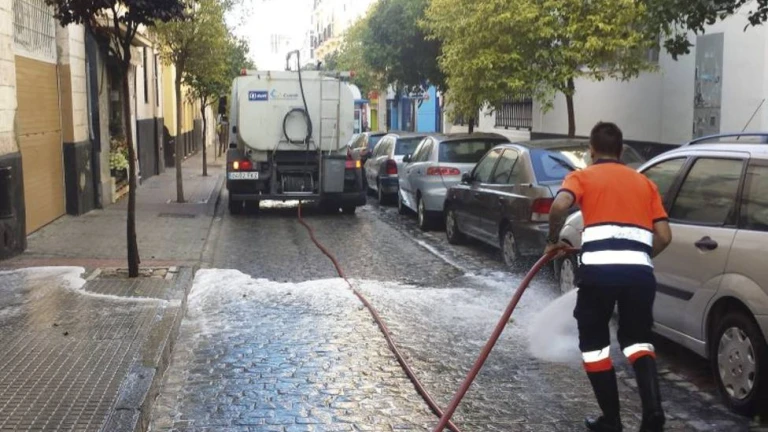 Trabajos de limpieza en las calles de la capital gaditana