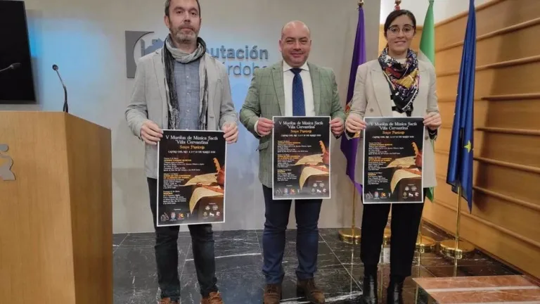La Diputación de Córdoba, a través de su Delegación de Cultura, el Ayuntamiento de Castro del Río, la Hermandad del Santo Entierro y el Ateneo Música Sacra 'Villa Cervantina' han presentado la V Muestra de Música Sacra Villa Cervantina, que se llevará a cabo del 8 al 10 de marzo en la localidad castreña bajo el título 'Sonos Passionis'.