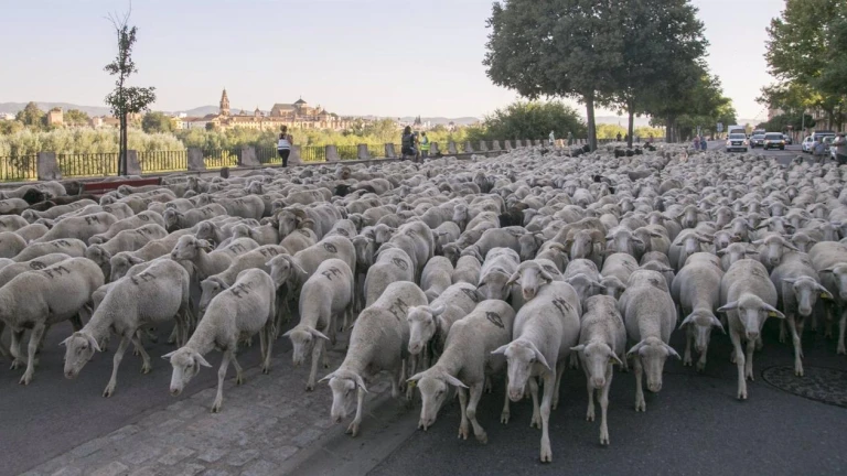 Unas 1.500 ovejas merinas cruzan la ciudad en su trashumancia desde Sierra Morena a la Campiña