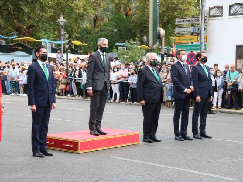 La Guardia Civil estuvo arropada por miles de personas que asistieron al acto central de la festividad de la Virgen del Pilar, patrona de la Guardia Civil, dentro de la semana institucional de la Benemérita y que se viene festejando desde la semana pasada en Córdoba. El desfile estuvo presidido por el ministro del Interior, Fernando Grande-Marlaska.