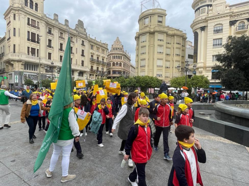 Hoy más de once centros escolares han querido arropar el acto que ha organizado la AACC en la plaza de las Tendillas, donde han participado también enfermeros, escolares, voluntarios y representantes institucionales.