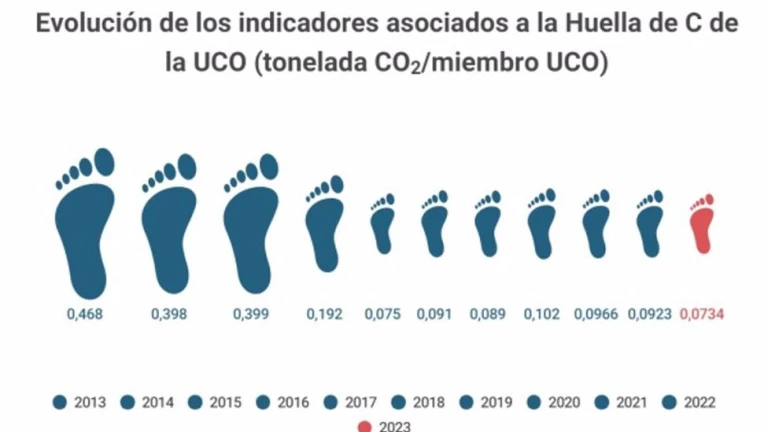 Desde enero de 2022 la UCO cuenta con el registro de la Huella de Carbono de los años 2014 a 2022 en el Ministerio de Transición Ecológica y Reto Demográfico (Miteco). Una vez calculada la huella para el año 2023, se ha procedido a la solicitud de dicho registro correspondiente al año 2023. Esta estrategia de cálculo y esfuerzos de reducción de la huella de carbono se enmarca dentro del compromiso ambiental de la UCO, y forma parte de los objetivos principales del II Plan de Sostenibilidad Ambiental 2023-2027 de la universidad.