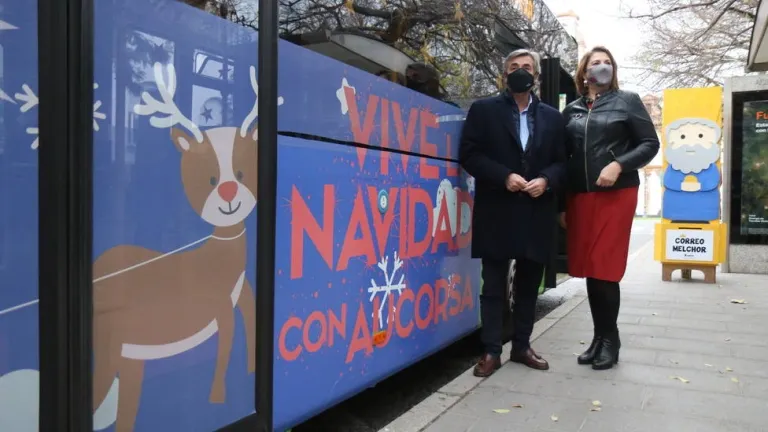 La delegada del ramo, Eva Contador, junto al presidente de Aucorsa, Miguel Ángel Torrico han presentado esta acción en la Plaza de Colón, donde se ha podido ver uno de los distintos autobuses que prestarán este servicio. Estarán tematizados con decoración y música navideña, y tendrán un aforo para 50 personas.