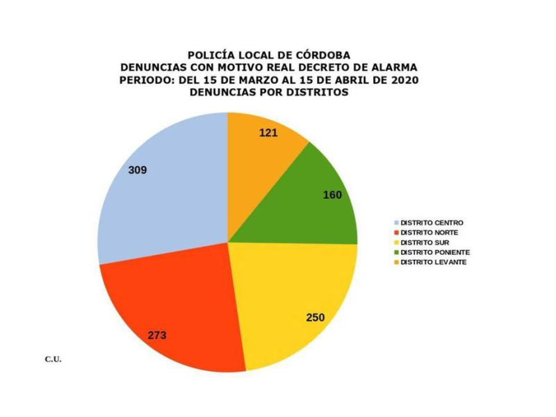 La Policía Local de Córdoba ha formulado un total de 1.113 denuncias referidas al incumplimiento de las medidas planteadas en el Real Decreto 463/2020 en el que, desde el pasado 14 de marzo, se establecen las condiciones del Estado de Alarma para frenar la expansión del Coronavirus.