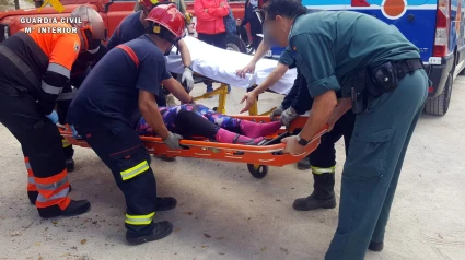 Los guardias civiles tras comprobar que la accidentada debía de ser trasladada en camilla, facilitaron la ubicación al Servicio de Extinción de Incendios y Salvamento de Lucena
