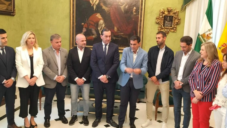 Víctor Díaz, Paco López y Alfredo García han acudido hoy a una recepción municipal donde se ha conocido la intención de ampliar por un año la concesión del Nuevo Los Cármenes