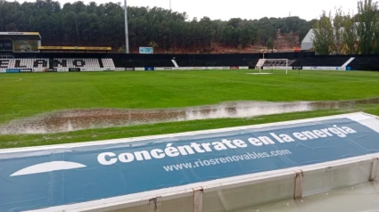 El Estadio Municipal de Tudela presenta un aspecto preocupante después de las últimas lluvias. Este es el escenario en el que esta tarde 20 h. se debe de diputar el partido de Copa del Rey entre el Cortes y el Granada. Se espera que en las próximas horas las precipitaciones no sean tan cuantiosas como en las anteriores. También habrá que observar como responde el drenaje. Los colegiados del encuentro serán los que tengan que decir si es apto o no para la disputa del encuentro .
