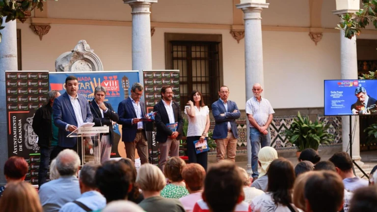 El Festival de la Guitarra de Granada ha contado con el apoyo de todas las instituciones de Granada en la presentación de su programa de este año, que ha tenido lugar en el patio del Palacio Consistorial. Ayuntamiento, Diputación, Junta de Andalucía, Gegsa, el Patrona de la Alhambra y el Museo Casa de los Pisa-San Juan de Dios se dieron cita en el acto en el que se han dado a conocer los espectáculos que tendrán lugar entre el 15 de julio y el 7 de agosto. Juan Ramón Ferreira, concejal de Cultura, destacó la labor de este ciclo organizado por la Fundación Europea de la Guitarra, completando una programación de calidad, en las fechas en las que Granada se convierte en capital mundial de la guitarra, con la presencia de las principales concertistas tanto clásicos como flamencos, con aforo que se completa prácticamente en su totalidad, durante todos los conciertos. La Junta de Andalucía, estuvo representada por el delegado de Cultura, Turismo y Deportes, Fernando Egea, y por el delegado del Gobierno, Antonio Granados, quien destacó el apoyo de la administración autonómica desde su paso por la delegación de Cultura y la participación del Patronato de la Alhambra. También hizo referencia a la singularidad del Concurso de Guitarreros que de forma paralela al Festival convoca la Fundación, y que es pionero en el mundo en este tipo de certámenes.