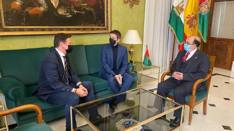 El Alcalde de Granada, Luis Salvador, recibió en la jornada del Miércoles del Ceniza al periodista Fernando Díaz de la Guardia, Pregonero de la Semana Santa 2021, que estuvo acompañado por el presidente de la Federación, Jesús Muros. El acto se desarrolló en el Salón de la Mariana del Palacio Consistorial. Durante el encuentro, que transcurrió en un ambiente de cordialidad, repasaron la carrera profesional del periodista y la primera autoridad municipal tuvo la oportunidad de exponer Díaz de la Guardia algunos de sus principales proyectos para la ciudad.
