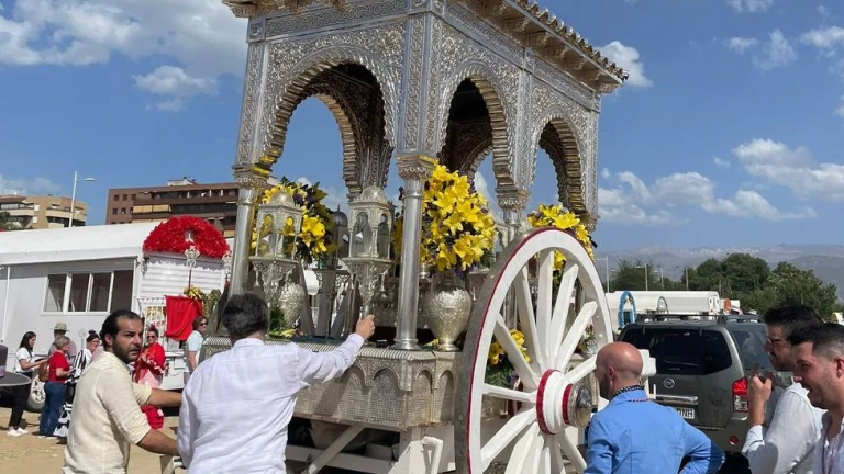 La Carreta del Rocío de la Hermandad, pese volcar a la salida de Granada, puede continuar su camino