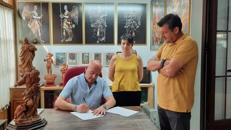 Encarnación Hurtado será la encargada de realizar las cuatro cartelas que completarán el paso de misterio de la Cofradía de la Entrada de Jesús en Jerusalén, tras la firma del acuerdo con el Hermano Mayor de la corporación, José Antonio Gamiz, que estuvo acompañado en el acto por el Albacea, Ricardo Gualda. En estas cartelas serán representadas las sedes que ha tenido a lo largo de la historia. Se trata de las iglesias de Santiago, San Justo y Pastor, Perpetuo Socorro y San Andrés, siendo la última en la que se fundó la Hermandad y donde reside en la actualidad.