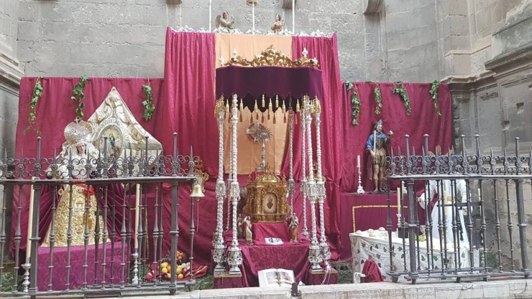 La Cofradía de los Estudiantes ha resultado ganadora del Concurso Municipal de Altares, en el que como informó COPE participaban otras 7 instalaciones. El premio consisditrá en 1.200 euros y le da derecho a montar el año próximo en la Plaza de las Pasiegas. En torno a un Sagrario y la Custodia, ubicados bajo un dosel formado con el palio de la Virgen de los Remedios, se sitúan dos imágenes cedidas por un particular. En una de ellas se aprecia al Jesús en el momento de instituir la Eucaristía y en otra una dolorosa de vestir. Tras ellos aparecen un estandarte de una asociación mariana de la Parroquia de San Justo y Pastor, donde tiene su sede y una escultura de San Fernando, debida a la gubia de Torcuato Ruiz del Peral. Las hierbas aromáticas situadas en el suelo a moda de alfombra procedía del Valle de Lecrín.