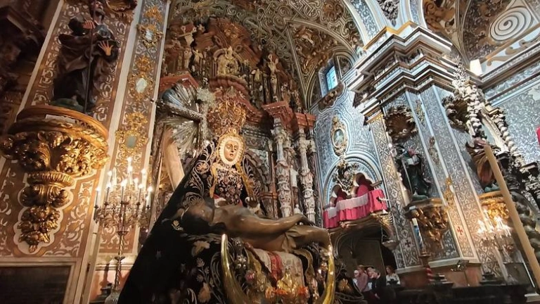 La Patrona de Granada luce el mando de la Duquesa de Pastrana y está situada en el crucero de su Basílica