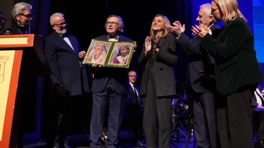 Tito Ortiz en el momento de recibir las tapas del Pregón de la Semana Santa de Granada 2026