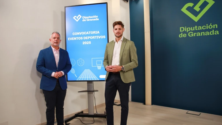 El presidente en funciones de la Diputación de Granada, Nicolás Navarro, junto al diputado de Deportes e Instalaciones Deportivas, Eric Escobedo, ha presentado una nueva convocatoria de ayudas destinadas a organizadores de eventos deportivos en la provincia. Esta es la segunda vez que se pone en marcha esta línea de ayudas, que cuenta con un presupuesto total de 200.000 euros.