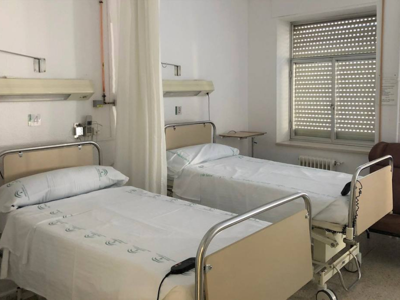 Unas 28 camas hospitalarias están disponibles en el ala derecha de la segunda planta del edificio, ubicado de la avenida Madrid, y otras tantas en el ala izquierda de la misma planta.