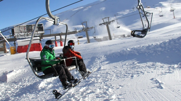 Esquiadores en un remonte en la estación de esquí de Sierra Nevada