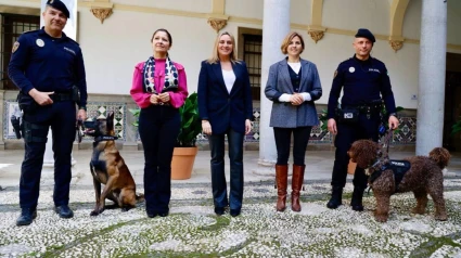 El denominado programa Asican es fruto de la cooperación entre la Policía Local, a través de la Unidad Canina, y el Servicio de Igualdad del Consistorio, y ha sido presentado este jueves por la alcaldesa, Marifrán Carazo, junto a la concejala de Protección Ciudadana, Ana Agudo, y la concejala de Igualdad, Encarnación González, así como con el responsable de la Unidad de Servicios Especiales de la Policía Local, Nicolás Gallardo.