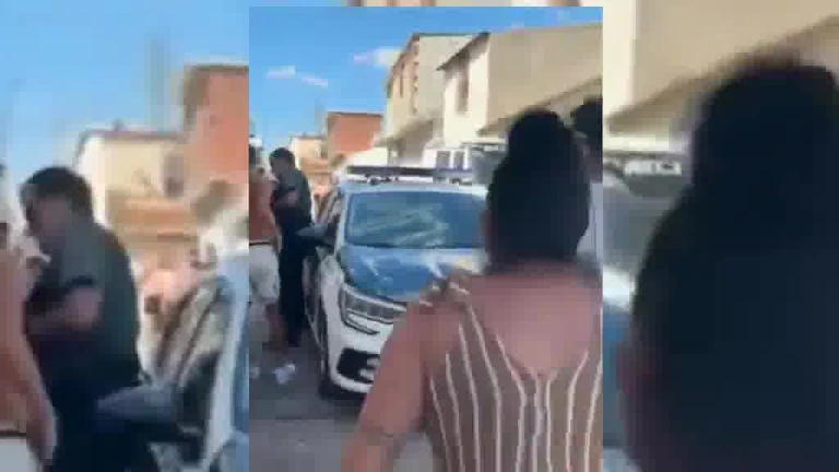 Un vídeo difundido por redes sociales, y compartido en su perfil de la red social 'X' por la Asociación Unificada de Guardias Civiles, deja ver a un grupo de menores, entre otras personas, alrededor de un coche del Instituto Armado, que uno de ellos atiza con una barra el vehículo.