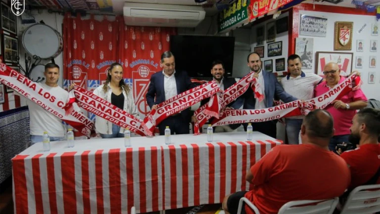 El Granada trata de acercarse a los aficionados. Una de las fórmulas que se van a emplear es la visita a las peñas. La primera en recibir a la embajada rojiblanca ha sido la decana, Peña Los Cármenes, a la que han acudido el Director General de la entidad, Alfredo García, el jugador, Bryan Zaragoza, y la jugadora, Cristina Moreno. Esta peña, como sucede en otras, vive momentos especialmente dinámicos en lo social,con la incorporación de nuevos socios, muchos de ellos jóvenes.
