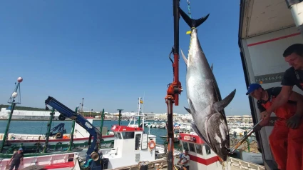Primera 'levantá' del atún rojo en la almadraba de Barbate