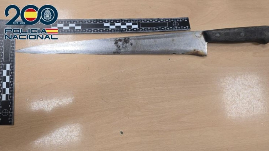 La patrulla ha iniciado entonces la persecución del sospechoso, quien, poco antes de ser alcanzado, ha arrojado un objeto metálico. Tras una búsqueda por la zona, los agentes han localizado un cuchillo de grandes dimensiones con una hoja de 32 centímetros y han encontrado en su bolsillo los 15 euros que presuntamente había robado.