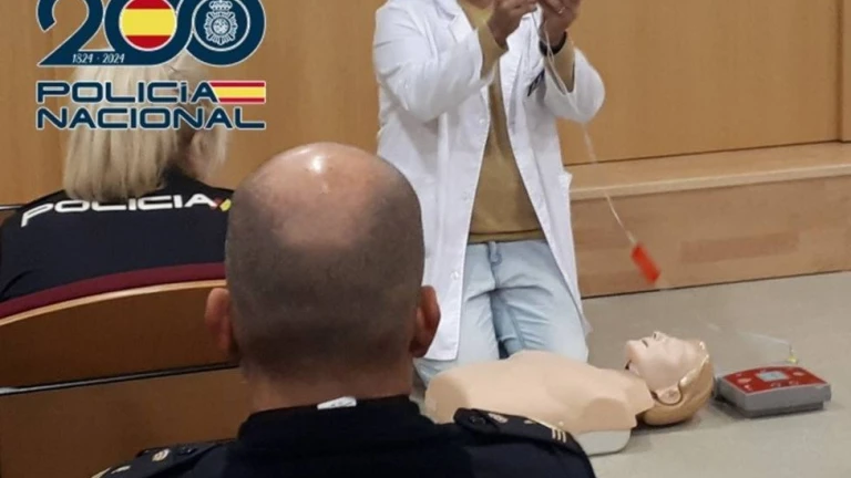 Durante el tiempo de espera de la ambulancia y dada la gravedad de la situación, uno de los agentes se desplazó hasta las dependencias de la Audiencia Provincial donde tienen conocimiento de la existencia de un desfibrilador. Este policía, haciendo uso de los conocimientos adquiridos en su formación permanente, siguió las instrucciones de manipulación del mismo y realizó una descarga en la que consiguió reanimar y estabilizar al afectado y seguidamente, realizó los continuos test de comprobación de constantes vitales.